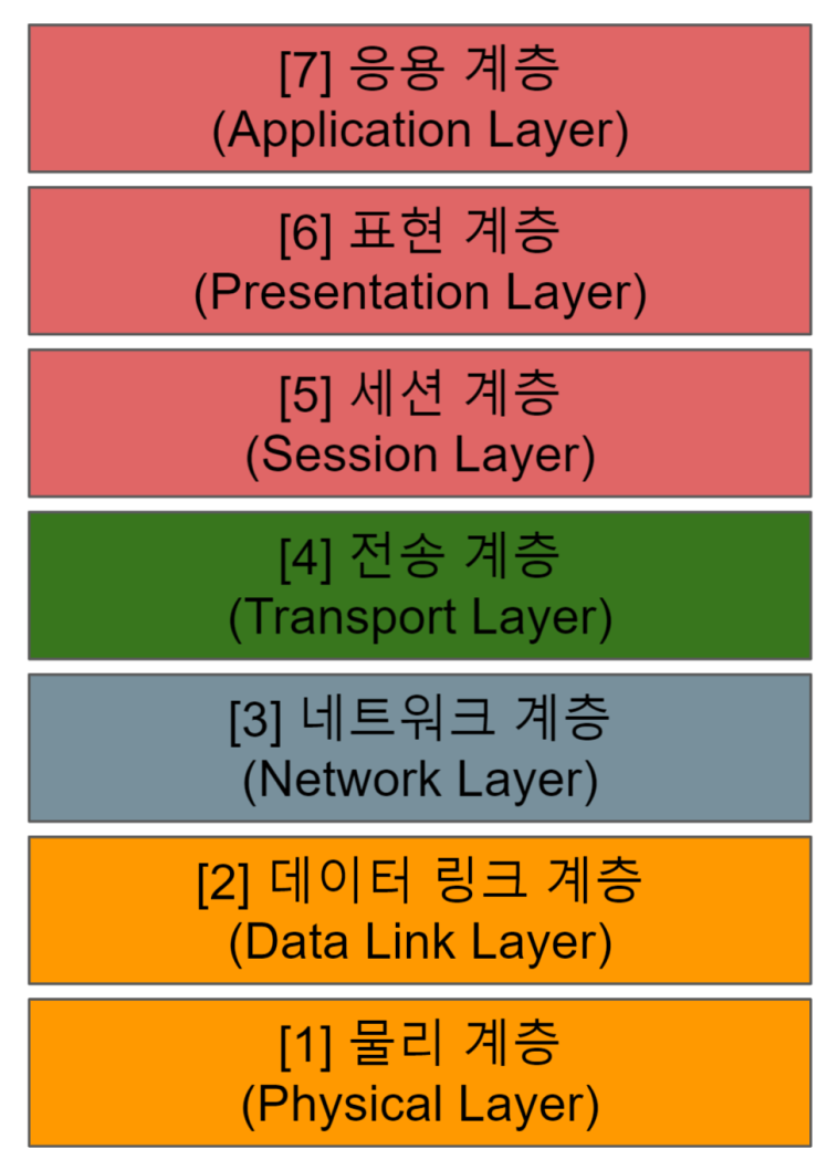 이렇게 OSI 7 계층은 통신이 일어나는 과정을 총 7가지로 구분 지어놓고