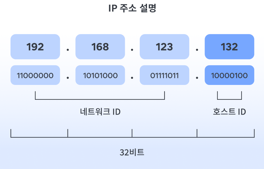 위의 IP 주소에서 마지막 숫자인 132가 호스트 ID에 해당합니다.