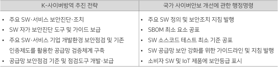 실행 지침으로는 기존에 NIST에서 개발한 SSDF (Secure Software Development Framework)가 행정명령의 요구사항에 맞게 업데이트되어 사용됩니다.