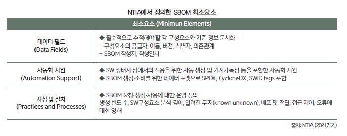 NTIA는 최근에 SBOM의 최소 요소를 발표했습니다.