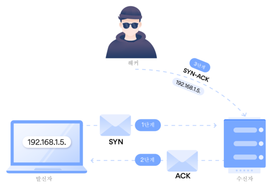 IP 스푸핑은 해커가 다른 사람의 IP를 모방하거나